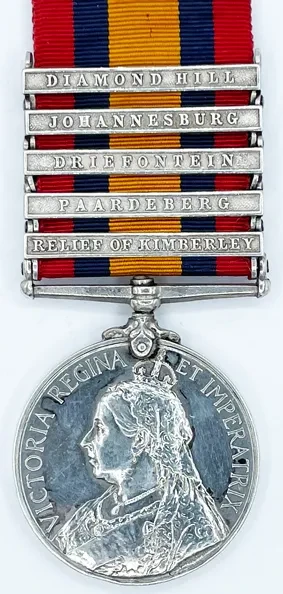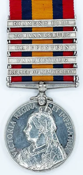Five clasps for Relief of Kimberley, Paardeberg, Driefontein, Johannesburg and Diamond Hill.