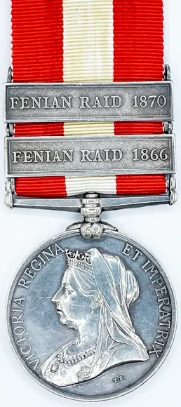 Two clasps for Fenian Raid 1866 and 1870. Very fine with copy of medal roll.