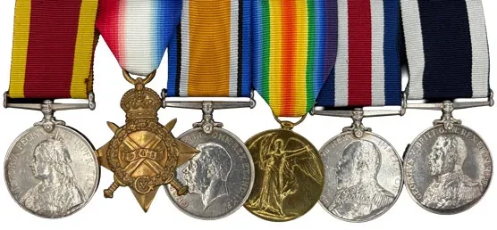 1914-15 Star and Victory medals naming erased.
