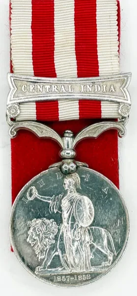 Served throughout the Central India Campaign of 1857-58, as Adjutant General to the force under Sir Hugh Rose, and was present at the attack on the camp before Ritghur, battle of Barodea, relief of Saugor, attack and capture of Garrakota, action and forcing the pass of Muddenpore, siege and storming of Jhansi, battle of the Betwa, and subsequent pursuit action and capture of Koonch, battle of Galowlie, and the several actions on the banks of the Jumna, action and capture of Calpee, action of Morar, battle and Capture of Gwalior (Six times mentioned in despatches, Brevet of Major, Indian Mutiny Medal, with clasp). He served again in the field at the latter end of 1858-59 as Adjutant General to the whole of the troops south of the Nerbudda under Sir Hugh Rose.
