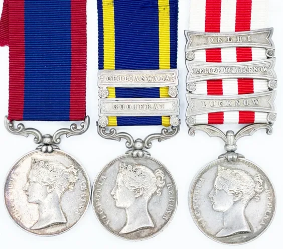 Punjab Medal officially named to: W. BETTS 9TH LANCERS Two clasps for Goojerat and Chilianwala.